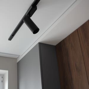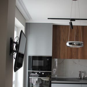 После облицовочных работ провели покраску оставшихся поверхностей в нейтральные тона, создавая гармоничную базу для интерьера, а затем оклеили обоями выбранные акцентные зоны, добавив индивидуальности и стиля.